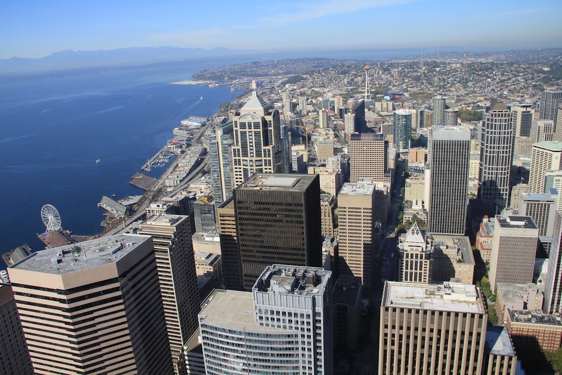 Далее мы поднялись на самое высокое здание в городе Columbia Center (Bank of America Tower). На 75(!) этаже открывается шикарный вид. У меня голова закружилась, так как было очень высоко и немного страшно. Не представляю, как там люди рабтают, наверное привыкли уже:)