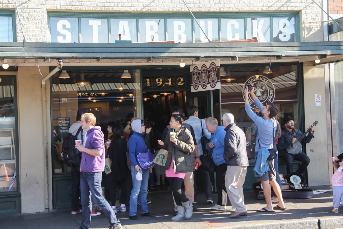 Напротив Паблик Маркета расположился самый первый Старбакс (Starbucks). Кто не знает, это сеть кофеен которая пользуется огромной популярностью не только у американцев, но и во всем мире. Когда мы зашли, негде было стать. Попробовать кофе в историческом месте желает десятки людей. Будучи равнодушными к кофеину, мы отправились дальше гулять по городу.